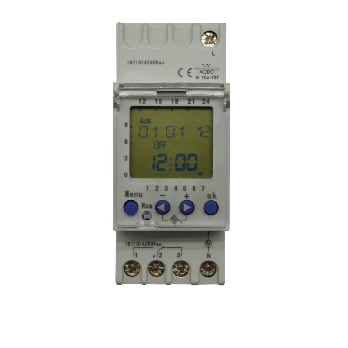 Horloge digitale hebdomataire railDIN 2M 12V AC/DC 2 Contacts inverse