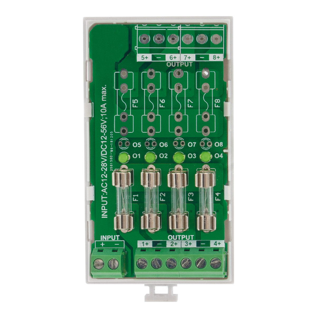 Carte multivoies rail DIN 3M 12-24V AC / 12-48V DC – 4 fusibles / 4 L