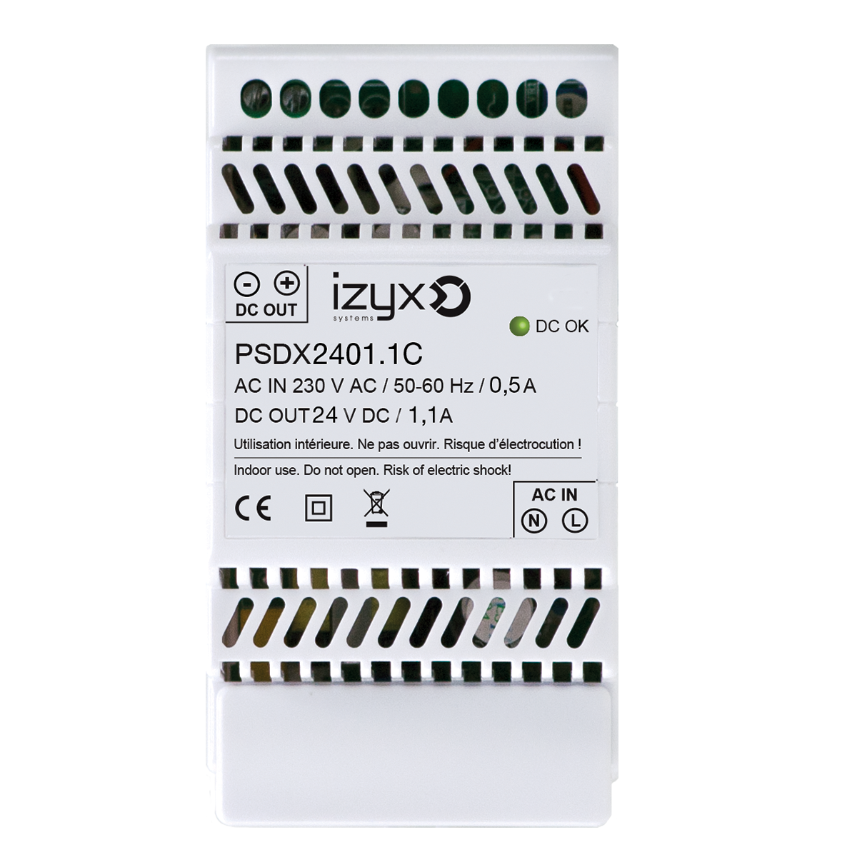 Alimentation chargeur rail DIN 3M 230V AC / 24V DC (27,6V) / 1,1A