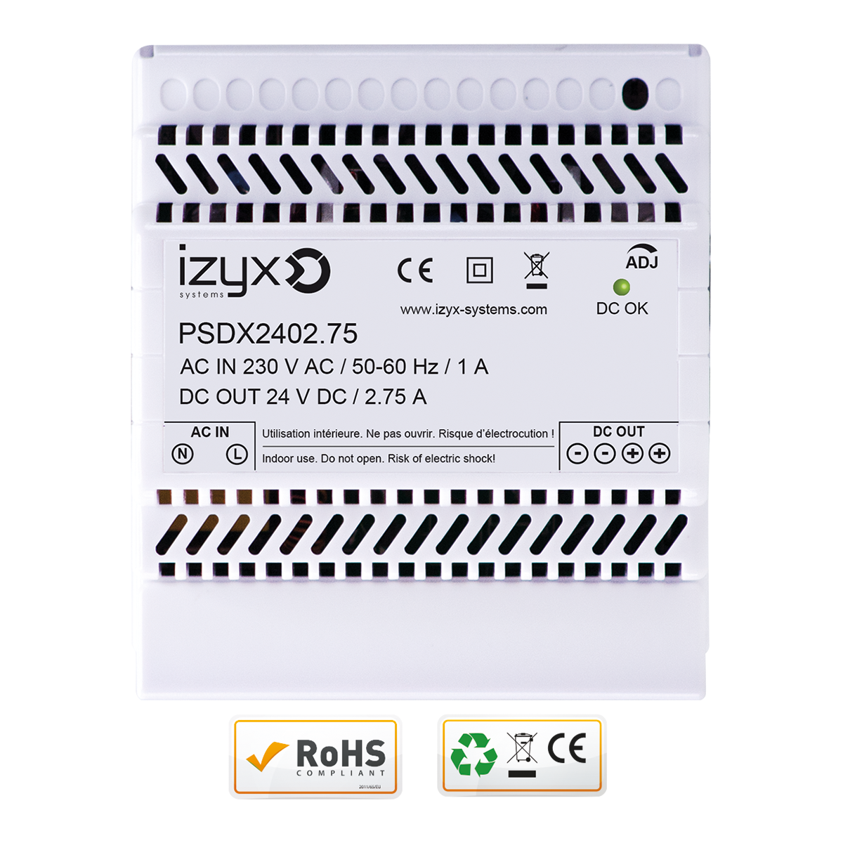 Alimentation rail DIN 5M 230V AC / 27,6V DC (24-28V) / 2,75A