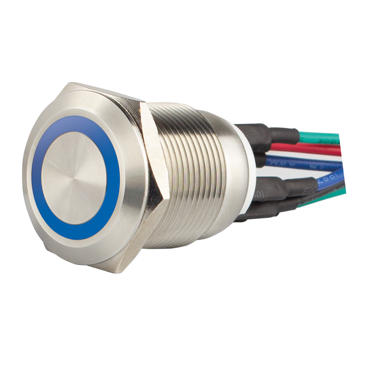 Bouton poussoir acier inox d=19 mm Halo bleu 12V AC/DC Contact NO+NC
