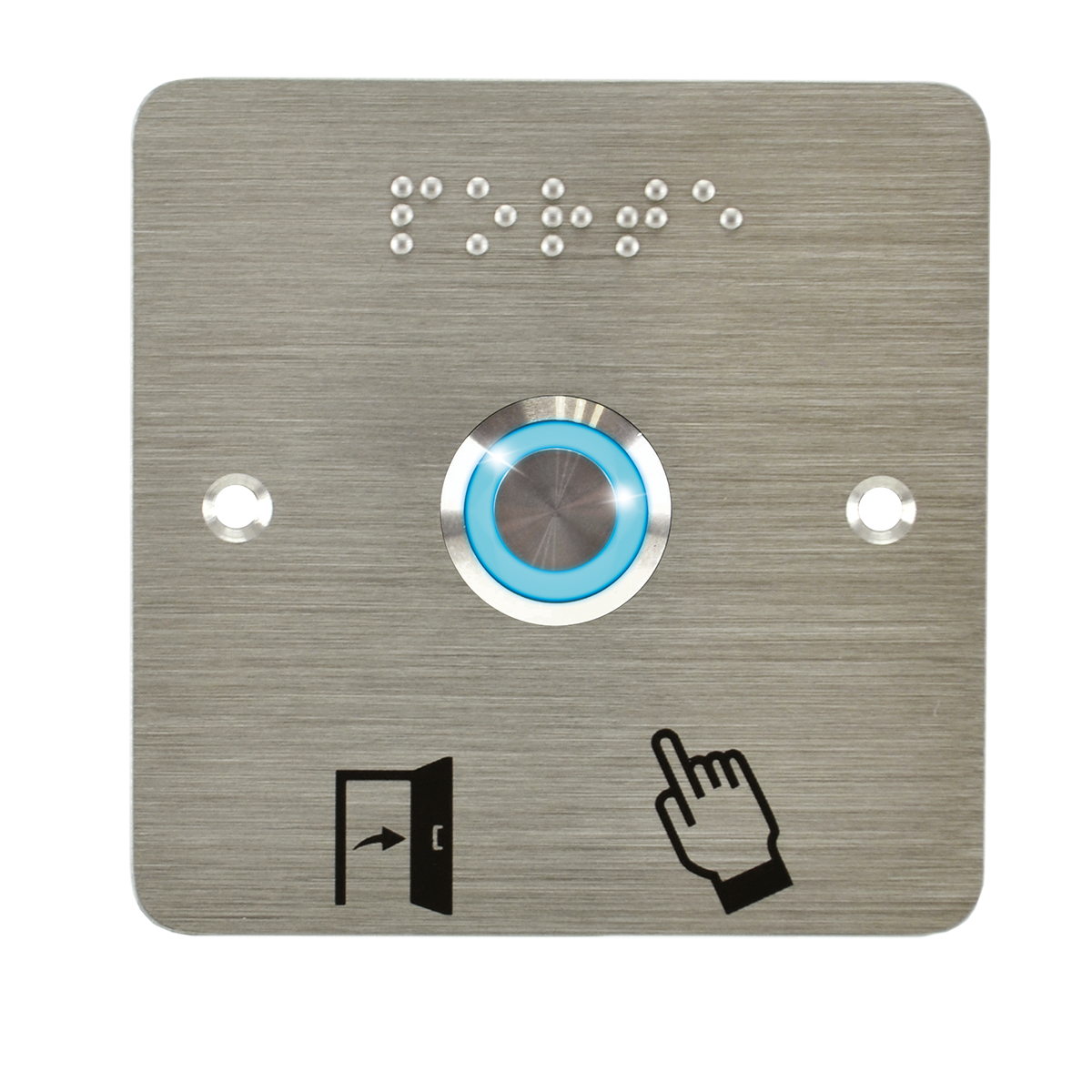 Bouton poussoir acier inox d=19mm Halo bleu 12V AC/DC Contact NO+NC (
