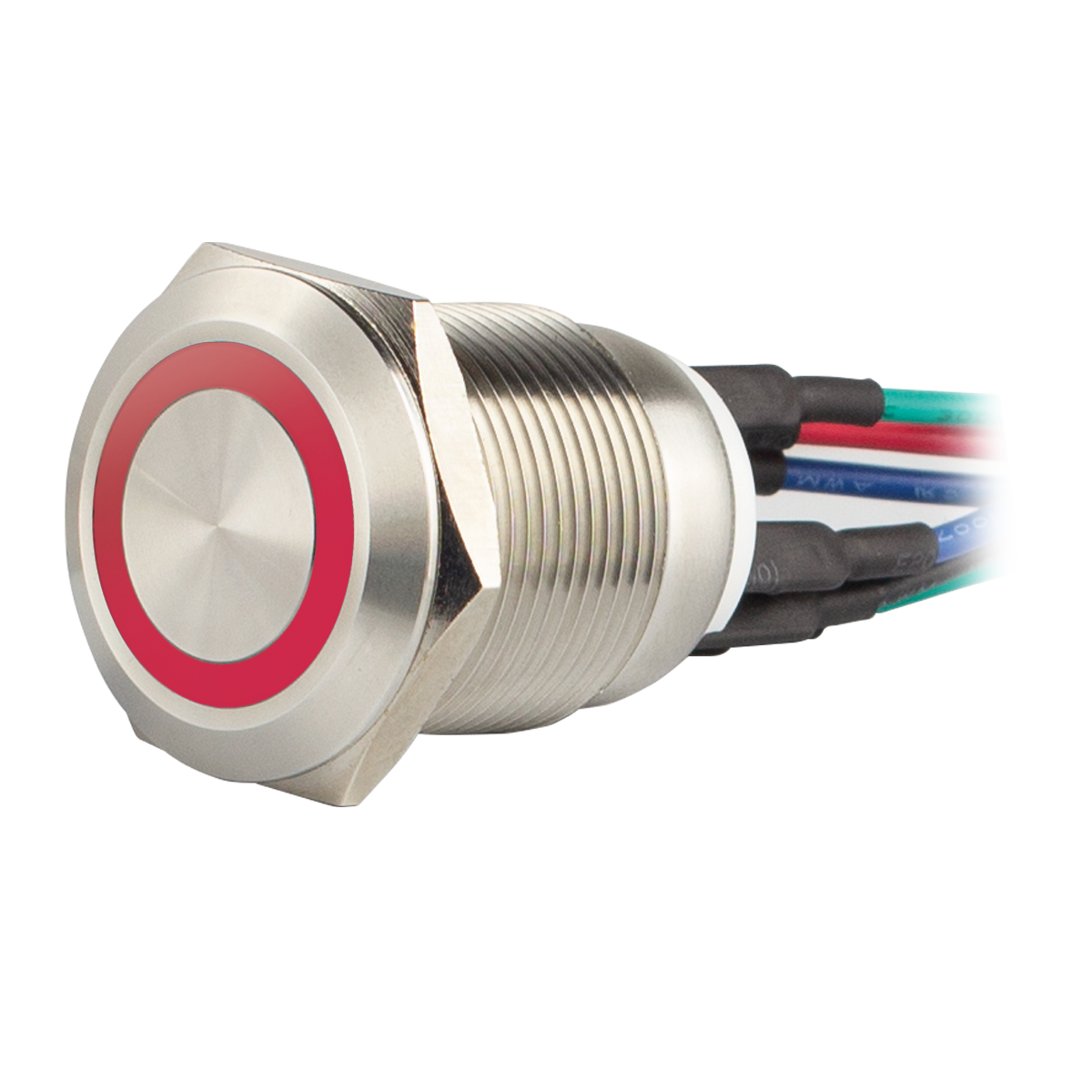 Bouton poussoir acier inox diam. 19 mm Halo rouge 12V AC/DC Contact N