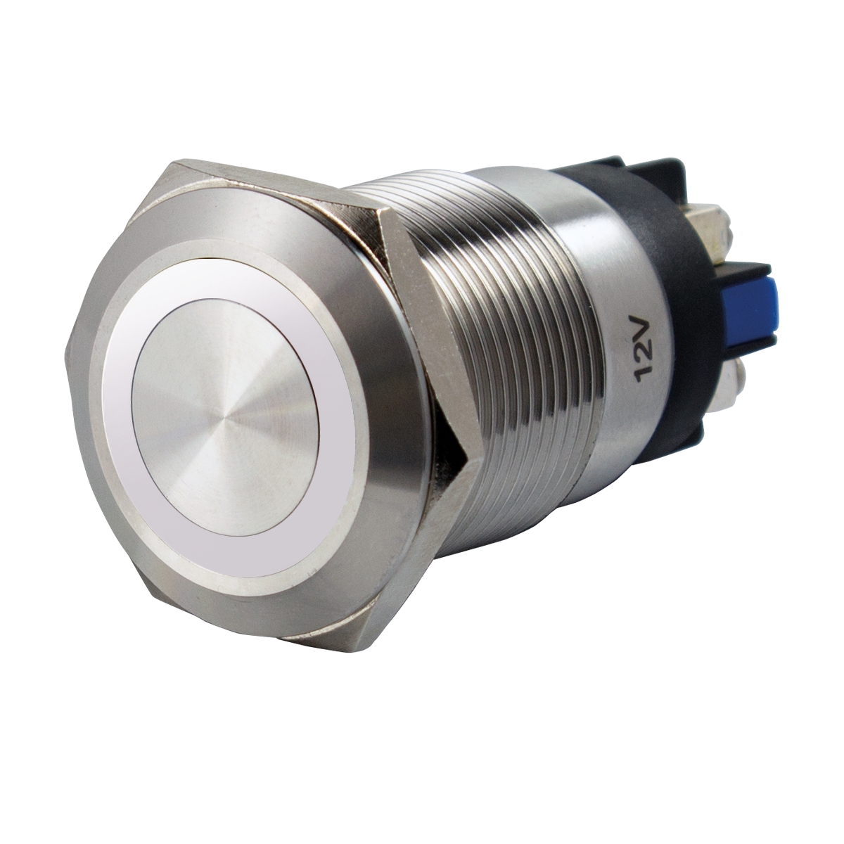 Bouton poussoir acier inox diam. 19 mm Halo blanc 12V AC/DC Contact N