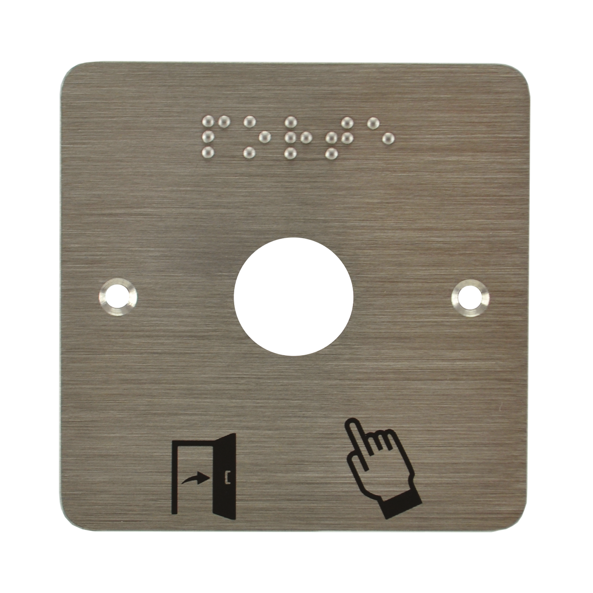 Plaque acier inoxydable 80 x 80 mm perçage diam. 19 mm braille PORTE
