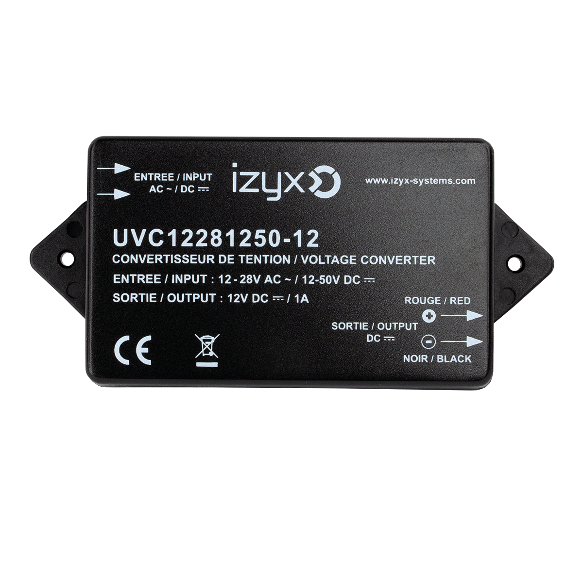 Convertisseur de tension : In 12-24V AC ou 12-50V DC / Out 12V DC 1A